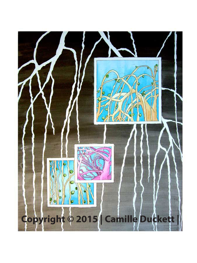 The assignment was to create a kind of hybrid object. The class was assigned to create a black and white lined drawing and then a colored image of each of our drawings. My idea originally was to mesh an orange peel with a rose. These pictures are two separate styles but conceptually the same idea.